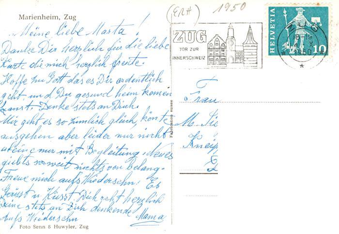 13919324 alte Postkarte Zug ZG Marienheim postalisch gelaufen Erhaltung siehe scans [WerneD78] KatCode: 11470250855028