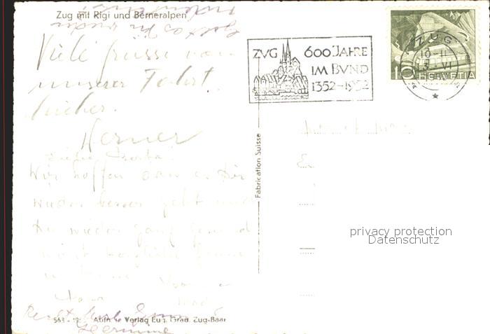 11655108 alte Postkarte Zug ZG mit Rigi und Berner Alpen postalisch gelaufen Erhaltung siehe scans KatCode: 11470250855028