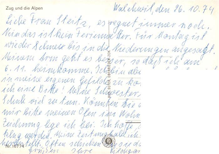 13914641 Zug ZG Ortsansicht mit Alpenpanorama postalisch nicht gelaufen Erhaltung siehe scans [WerneD78] KatCode: 11470250855028