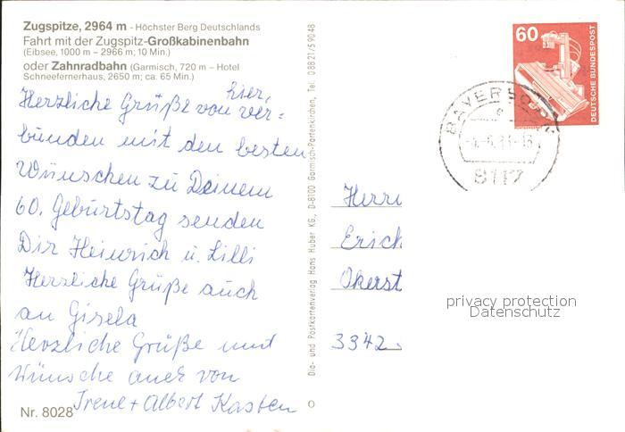 alte Postkarte Zugspitzbahn Seilbahn Zahnradbahn Zugspitze postalisch gelaufen Erhaltung siehe scans
