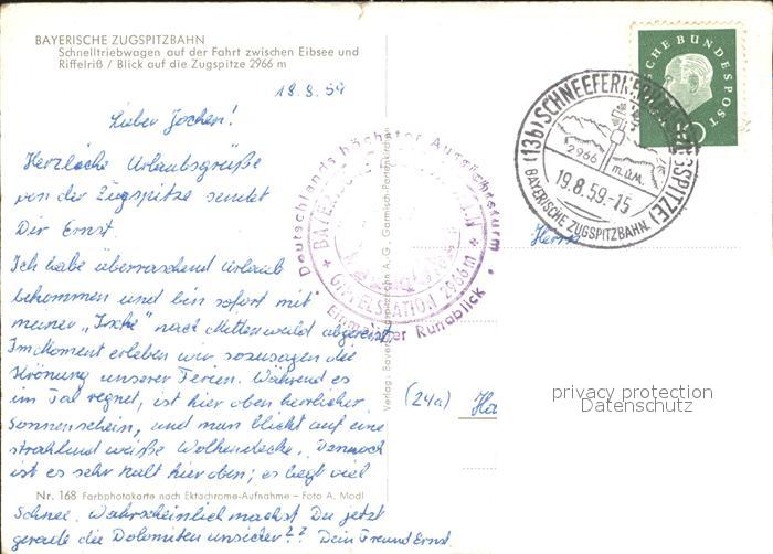 alte Postkarte Zugspitzbahn Zahnradbahn Zugspitze postalisch gelaufen Erhaltung siehe scans