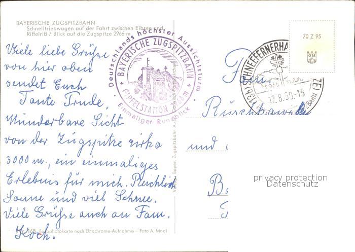 alte Postkarte Zugspitzbahn Zahnradbahn Zugspitze postalisch gelaufen Erhaltung siehe scans