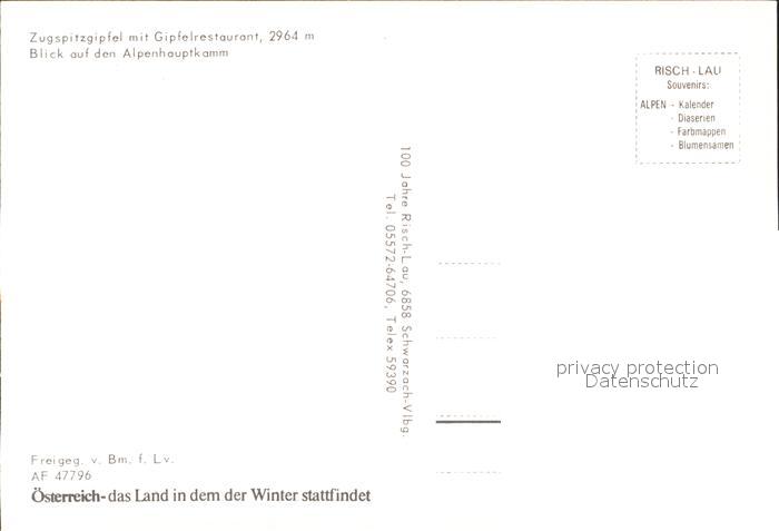 Zugspitzbahn Zugspitzgipfel Gipfelrestaurant Alpenhauptkamm Fliegeraufnahme postalisch nicht gelaufen Erhaltung siehe scans