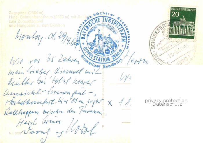 72824183 alte Postkarte Zugspitze Berghotel Schneefernerhaus mit Seilbahn Gipfel postalisch gelaufen Erhaltung siehe scans [FriedD77] KatCode: 11110009180117