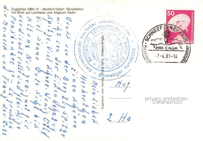 73596836 alte Postkarte Zugspitze Bergstation mit Lechtaler und Allgaeuer Alpen postalisch gelaufen Erhaltung siehe scans [WerneD78] KatCode: 11110009180117