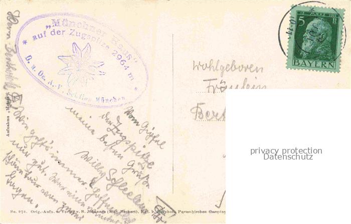 74128614 alte Postkarte Zugspitze Garmisch-Partenkirchen Bayern Ostgipfel postalisch gelaufen Erhaltung siehe scans [WerneD78] KatCode: 11110009180117