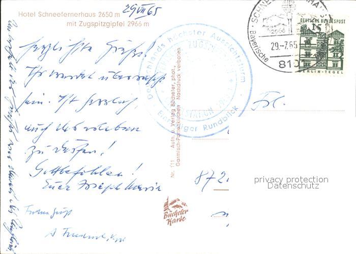 72247976 alte Postkarte Zugspitze Hotel Schneefernerhaus mit Gipfel postalisch gelaufen Erhaltung siehe scans KatCode: 11110009180117