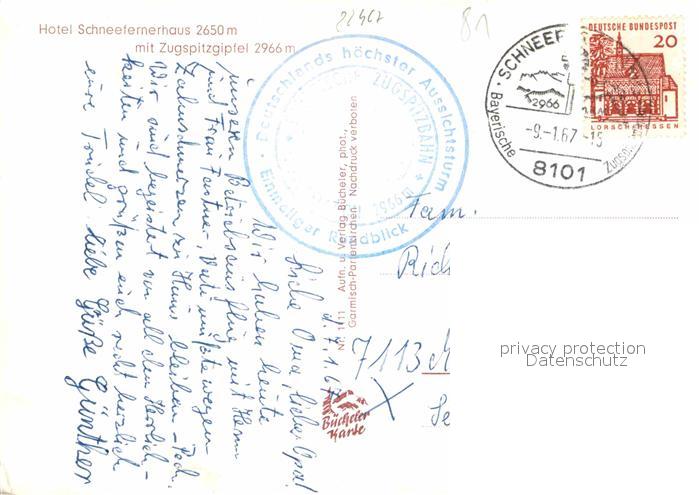 72913719 alte Postkarte Zugspitze Hotel Schneefernerhaus mit Zugspitzgipfel postalisch gelaufen Erhaltung siehe scans [LiesaD40] KatCode: 11110009180117