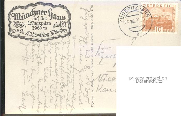 72157773 alte Postkarte Zugspitze Muenchener Haus postalisch gelaufen Erhaltung siehe scans KatCode: 11110009180117