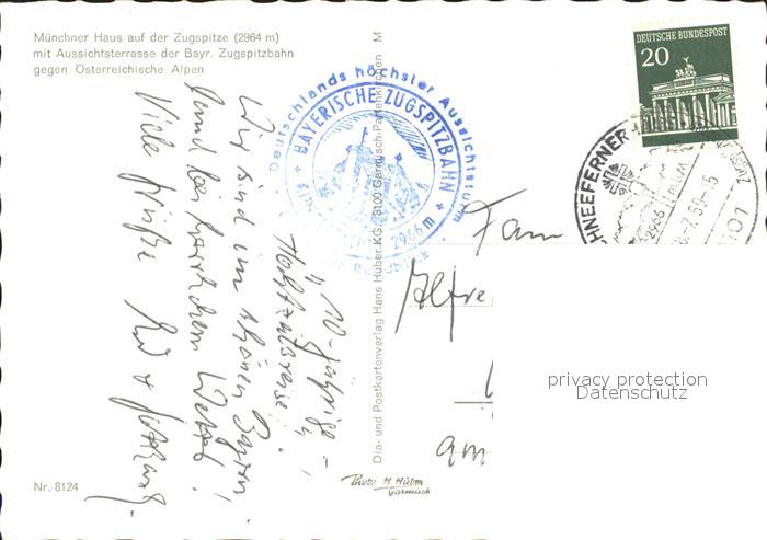 72291251 alte Postkarte Zugspitze Muenchner Haus Aussichtsterrasse postalisch gelaufen Erhaltung siehe scans KatCode: 11110009180117