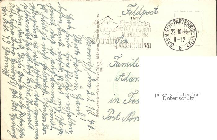 72471669 alte Postkarte Zugspitze Muenchner Haus Fliegeraufnahme postalisch gelaufen Feldpost Erhaltung siehe scans KatCode: 11110009180117