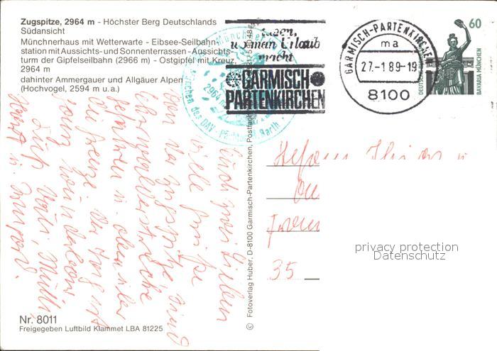 72237005 alte Postkarte Zugspitze Muenchnerhaus Wetterwarte Eibsee-Seilbahn postalisch gelaufen Erhaltung siehe scans KatCode: 11110009180117