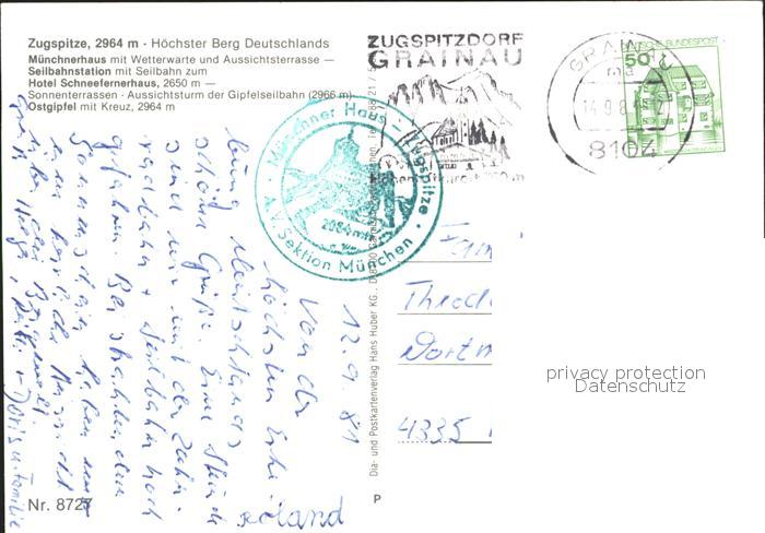 72235884 alte Postkarte Zugspitze Muenchnerhaus Wetterwarte Seilbahnstation Hotel Schneefernerhaus Ostgipfel postalisch gelaufen Erhaltung siehe scans KatCode: 11110009180117