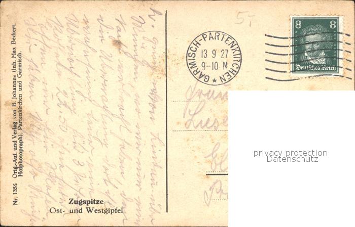 72922299 alte Postkarte Zugspitze Ostgipfel Westgipfel Bergwanderer postalisch gelaufen Erhaltung siehe scans [FriedD46] KatCode: 11110009180117