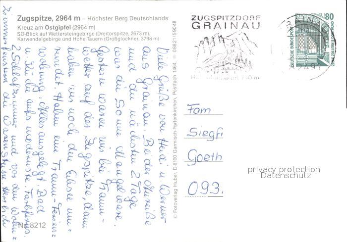 72376136 alte Postkarte Zugspitze Ostgipfel postalisch gelaufen Erhaltung siehe scans KatCode: 11110009180117