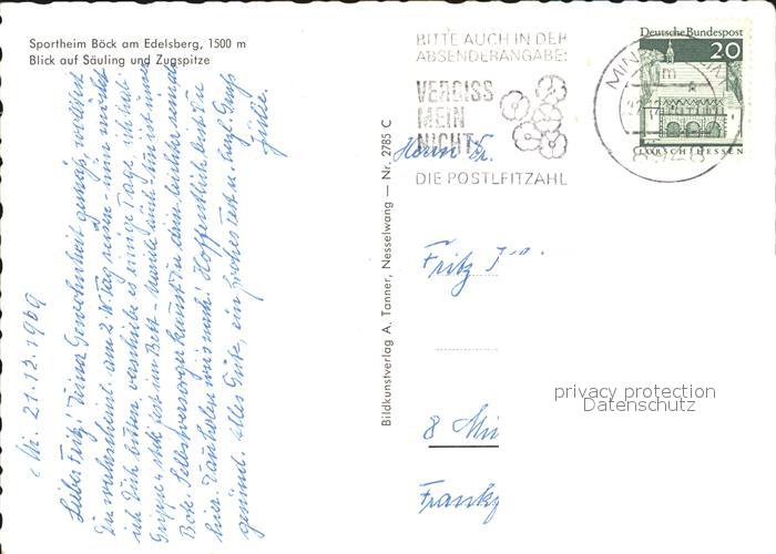 72598684 alte Postkarte Zugspitze Sportheim Boeck am Edelsberg mit Saeuling postalisch gelaufen Erhaltung siehe scans [LiesaD40] KatCode: 11110009180117