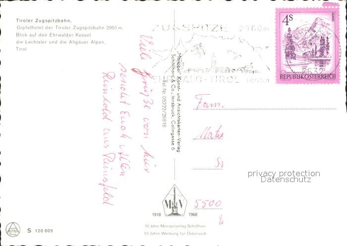 72259434 alte Postkarte Zugspitze Tiroler Zugspitzbahn Gipfelhotel postalisch gelaufen Erhaltung siehe scans KatCode: 11110009180117