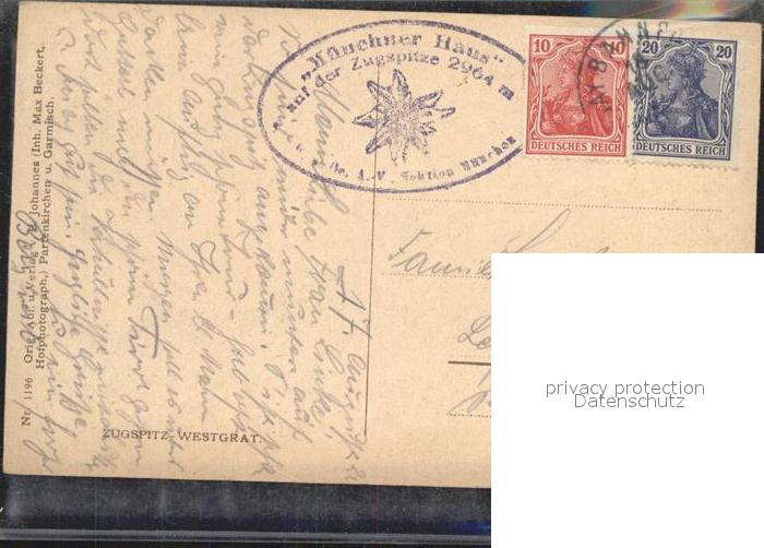 72129383 alte Postkarte Zugspitze Westgrat postalisch gelaufen Erhaltung siehe scans KatCode: 11110009180117