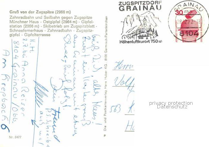 72738888 alte Postkarte Zugspitze Zahnradbahn Seilbahn Muenchner-Haus Ostgipfel Schneefernerhaus postalisch gelaufen Erhaltung siehe scans [LiesaD40] KatCode: 11110009180117