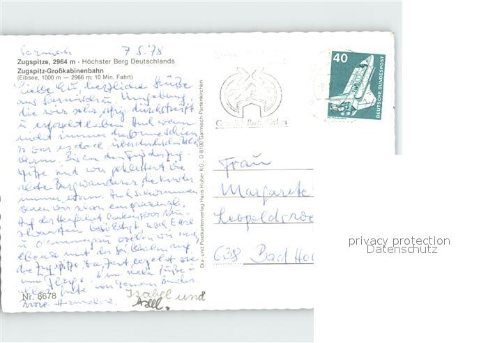 72015419 alte Postkarte Zugspitze Zugspitz Grosskabinenbahn postalisch gelaufen Erhaltung siehe scans KatCode: 11110009180117
