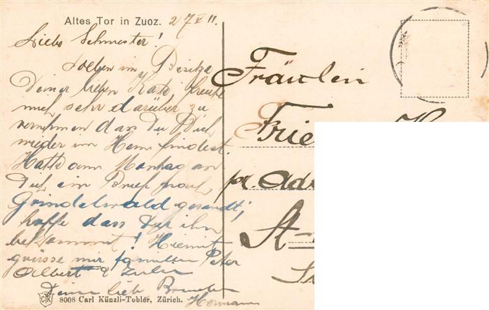 13970416 alte Postkarte Zuoz GR Altes Tor postalisch gelaufen Erhaltung siehe scans [FriedD77] KatCode: 11470100335254
