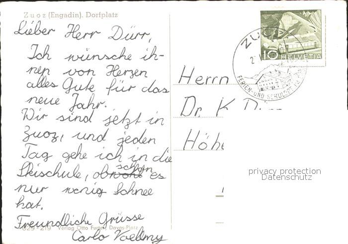 11649234 alte Postkarte Zuoz GR Dorfbrunnen postalisch gelaufen Erhaltung siehe scans KatCode: 11470100335254