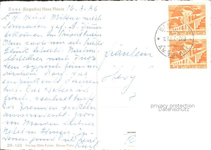 11649819 alte Postkarte Zuoz GR Haus Planta postalisch gelaufen Erhaltung siehe scans KatCode: 11470100335254