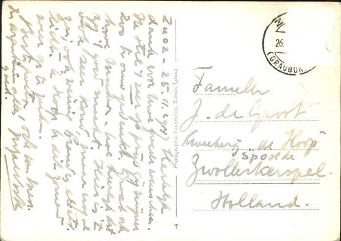 11113169 alte Postkarte Zuoz GR Nationalpark postalisch gelaufen KatCode: 11470100335254