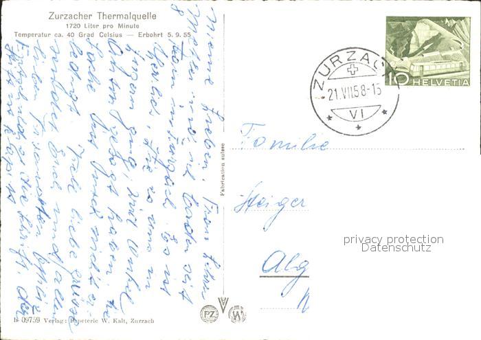 11627705 Zurzach Fliegeraufnahme Thermalquelle postalisch gelaufen Erhaltung siehe scans Alte Ansichtskarte Postkarte alte Postkarte hz_W Katcode 11470010055526