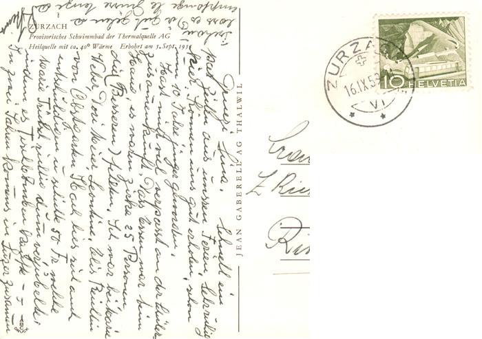 13931849 alte Postkarte Zurzach Schwimmbad der Thermalquelle AG Heilquelle postalisch gelaufen Erhaltung siehe scans [FriedD77] KatCode: 11470010055526