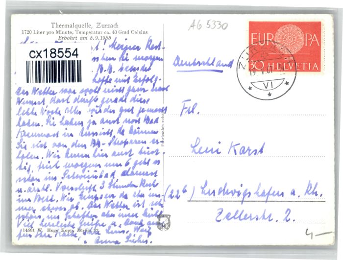 10722835 alte Postkarte Zurzach Thermalquelle postalisch gelaufen KatCode: 11470010055526