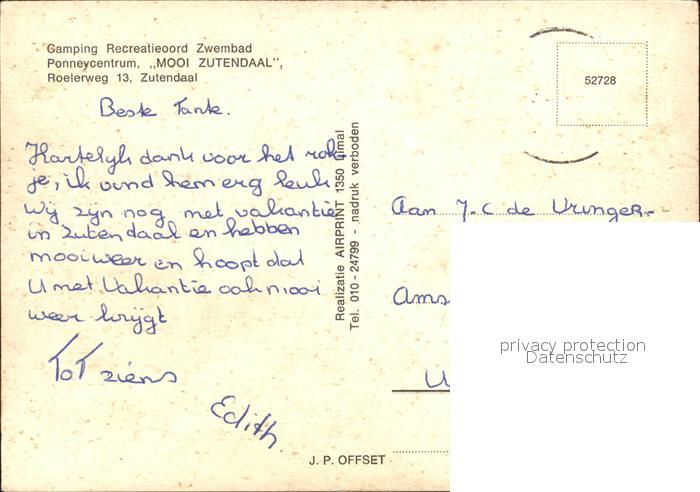 72483876 carte postale Zutendaal Camping Recreatieoord Zwembad Ponneycentrum Fliegeraufnahme postalisch gelaufen Erhaltung siehe scans KatCode: 11070071001097