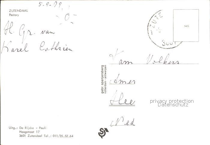 72274624 carte postale Zutendaal Pastory postalisch gelaufen Erhaltung siehe scans KatCode: 11070071001097