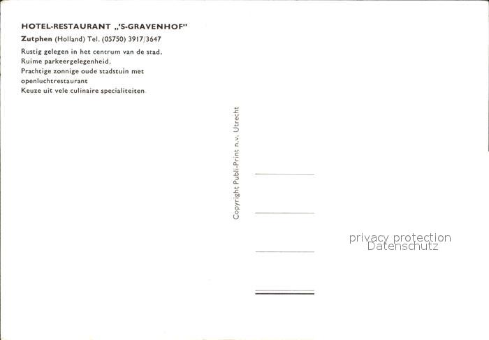 Zutphen Hotel Restaurant S Gravenhof Gastraum postalisch nicht gelaufen Erhaltung siehe scans