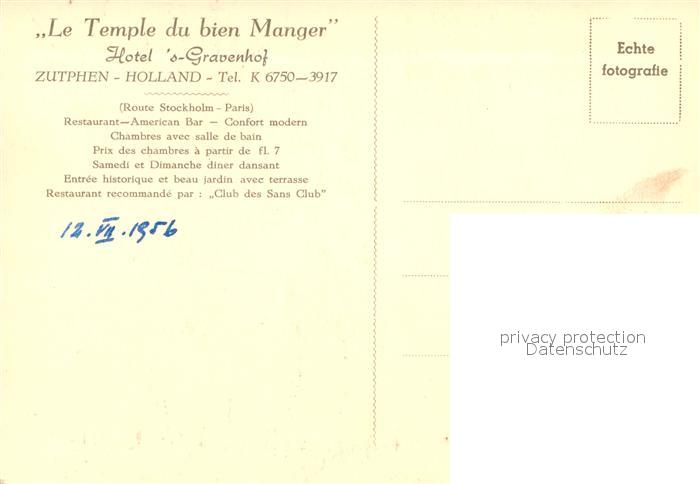 32983686 Zutphen Le Temple du bien Manger Hotel S Gravenhof postalisch nicht gelaufen Erhaltung siehe scans [NatalD47] KatCode: 11370400