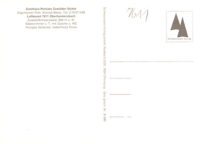 73928386 Zuwald Oberharmersbach Zuwaelder Stueble Gastraum postalisch nicht gelaufen Erhaltung siehe scans [FriedD77] Frie Katcode 11110008317088