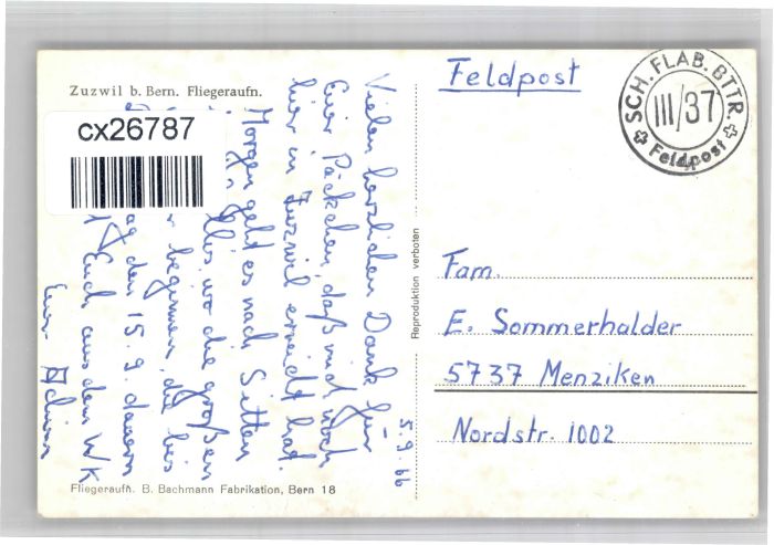10850047 alte Postkarte Zuzwil BE Fliegeraufnahme postalisch gelaufen KatCode: 11470060165194