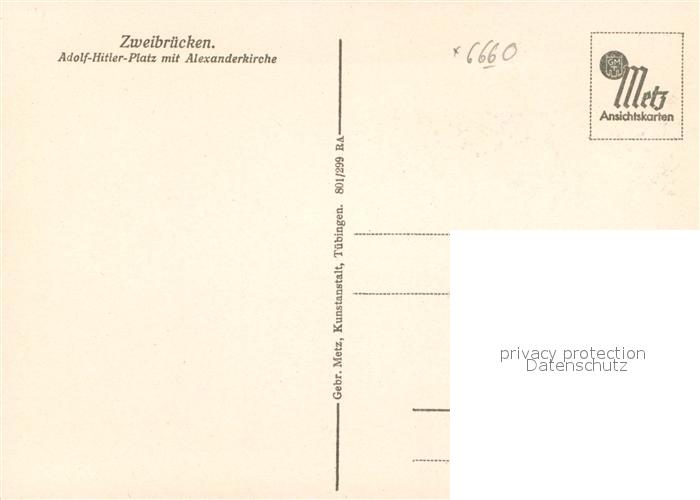 42911385 Zweibruecken AH Platz mit Alexanderkirche postalisch nicht gelaufen Erhaltung siehe scans [WerneD78] KatCode: 11110007320000