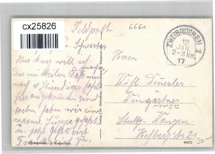30826700 alte Postkarte Zweibruecken ostamt postalisch gelaufen KatCode: 11110007320000