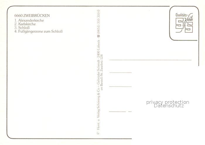 73182850 Zweibruecken Pfalz Alexanderkirche Karlskirche Schloss Fussgaengerzone postalisch nicht gelaufen Erhaltung siehe scans [WerneD78] KatCode: 11110007320000