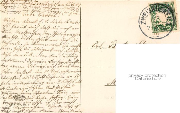 73821874 alte Postkarte Zweibruecken Pfalz Herzogsplatz und Schiller Allee postalisch gelaufen Erhaltung siehe scans [WerneD78] KatCode: 11110007320000
