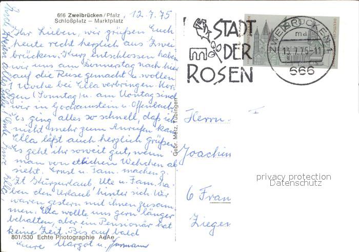 72149641 alte Postkarte Zweibruecken Schlossplatz Marktplatz Kirche postalisch gelaufen Erhaltung siehe scans KatCode: 11110007320000