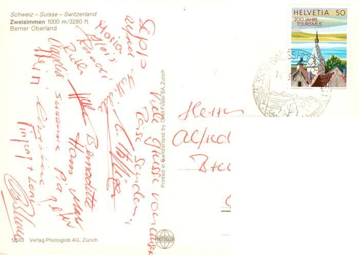 13921156 Zweisimmen BE Panorama Seilbahn Kirche Bergbahn Strassenpartien postalisch nicht gelaufen Erhaltung siehe scans [FriedD77] KatCode: 11470060215602