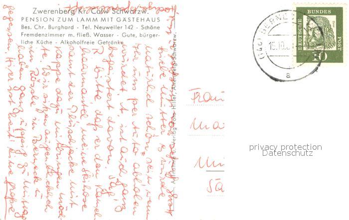 33658383 alte Postkarte Zwerenberg Calw Pension zum Lamm mit Gaestehaus Gastraum Panorama postalisch gelaufen Erhaltung siehe scans [WerneD78] KatCode: 11110008235050