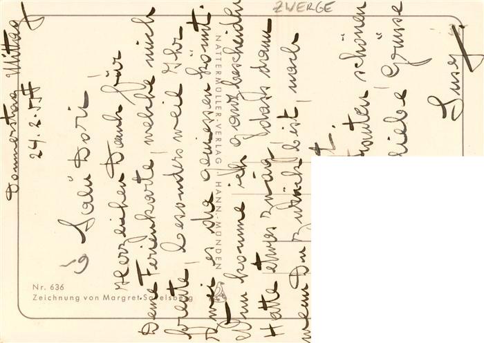 73940080 alte Postkarte Zwerge Dwarfs Nains Margret Savelsberg Nr. 636 Wein Feuchtfroehliche postalisch gelaufen Erhaltung siehe scans [IrynaD87] KatCode: 22340000000400