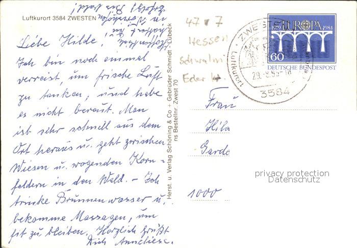 72227655 alte Postkarte Zwesten Bad Teich Luftkurort postalisch gelaufen Erhaltung siehe scans KatCode: 11110006634027