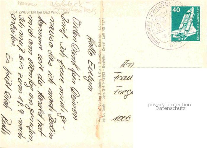 72916979 alte Postkarte Zwesten Bad Wildungen Fliegeraufnahme postalisch gelaufen Erhaltung siehe scans [FriedD77] KatCode: 11110006635003