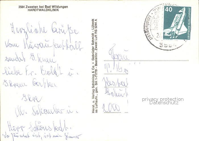72322375 alte Postkarte Zwesten Bad Wildungen Fliegeraufnahme Hardtwaldklinik postalisch gelaufen Erhaltung siehe scans KatCode: 11110006635003