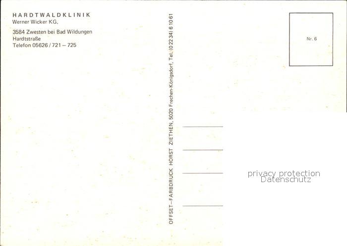 72494464 Zwesten Bad Wildungen Hardtwaldklinik postalisch nicht gelaufen Erhaltung siehe scans KatCode: 11110006635003