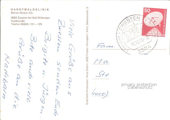 71993200 alte Postkarte Zwesten Bad Wildungen Hardtwaldklinik postalisch gelaufen Erhaltung siehe scans KatCode: 11110006635003